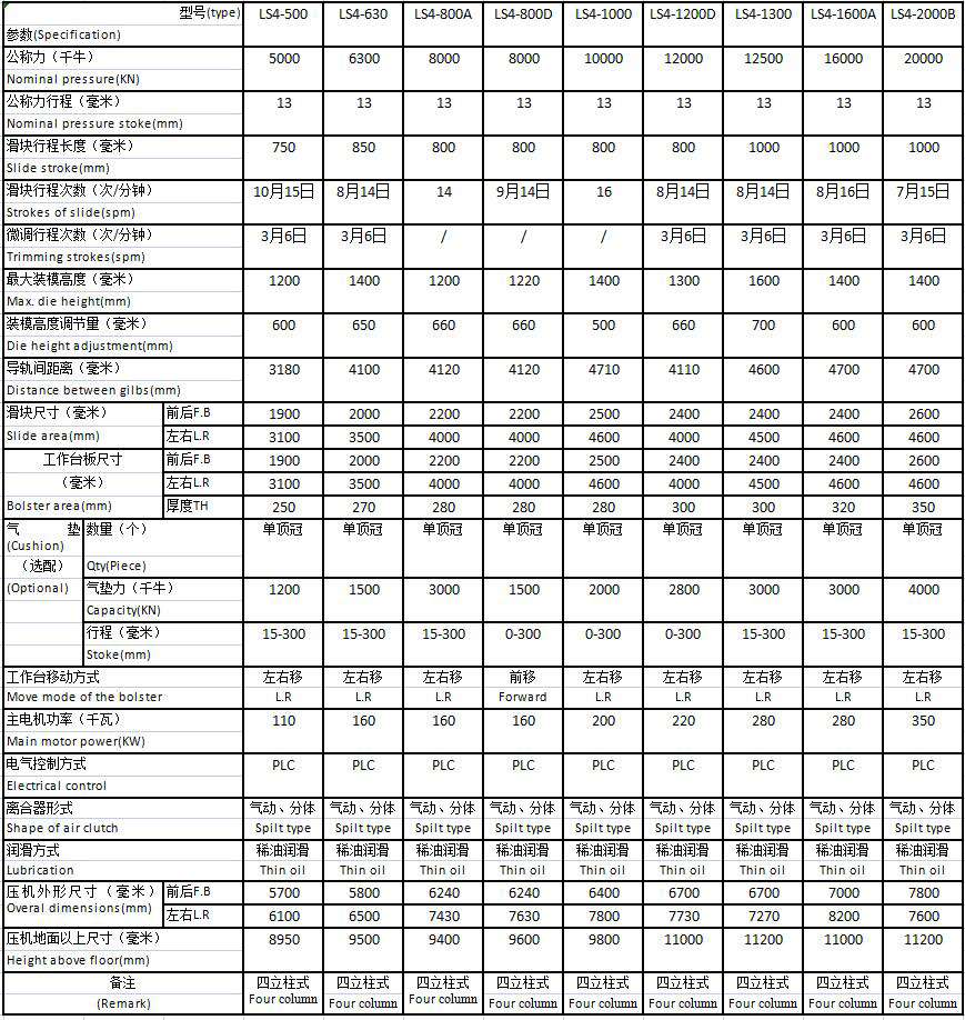 • 產(chǎn)品名稱:LS4系列閉式四點(diǎn)多連桿機(jī)械壓力機(jī)